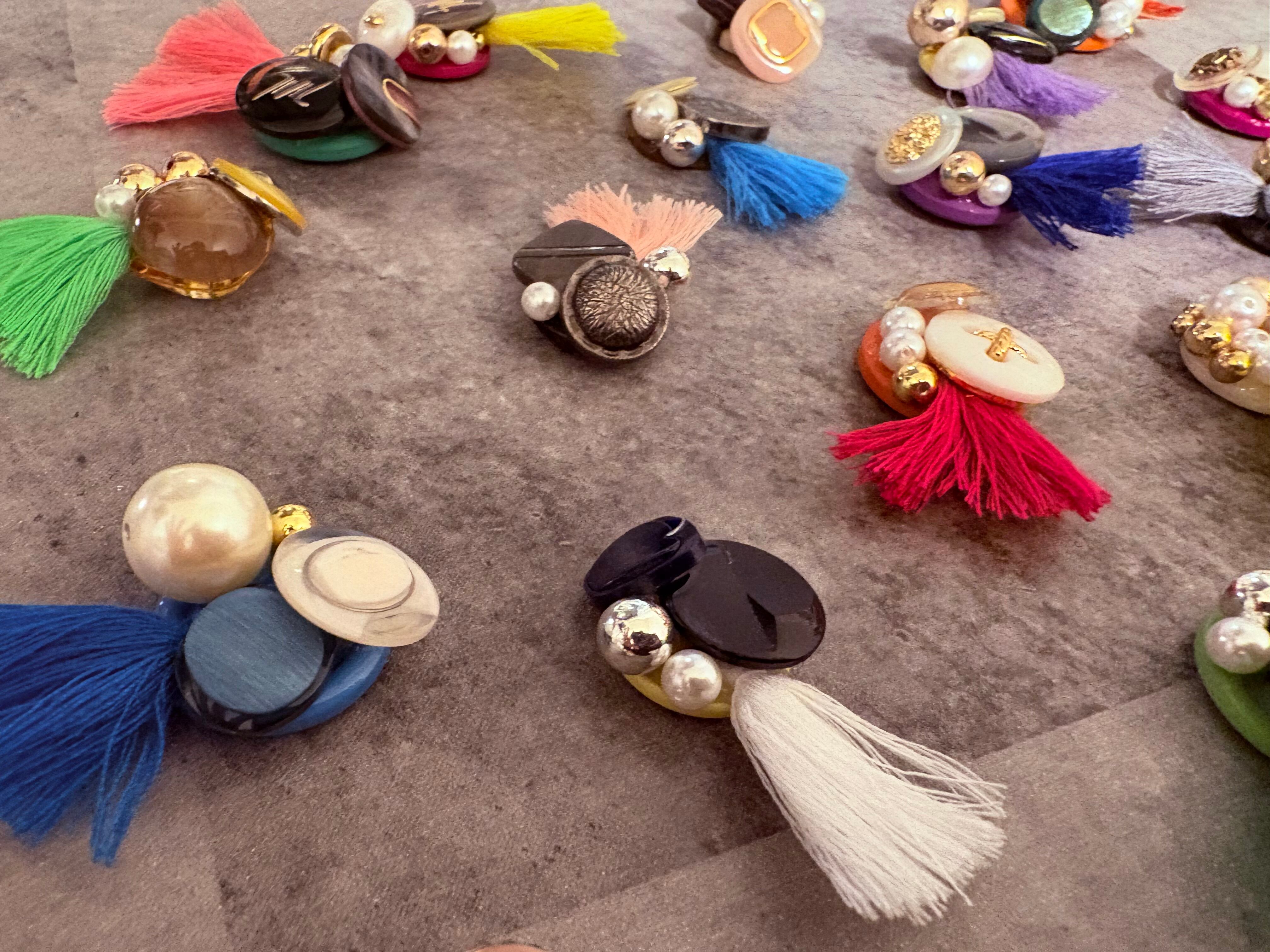 【100ペア】ヴィンテージ カボション ボタン タッセル ハンドメイド素材 パーツ